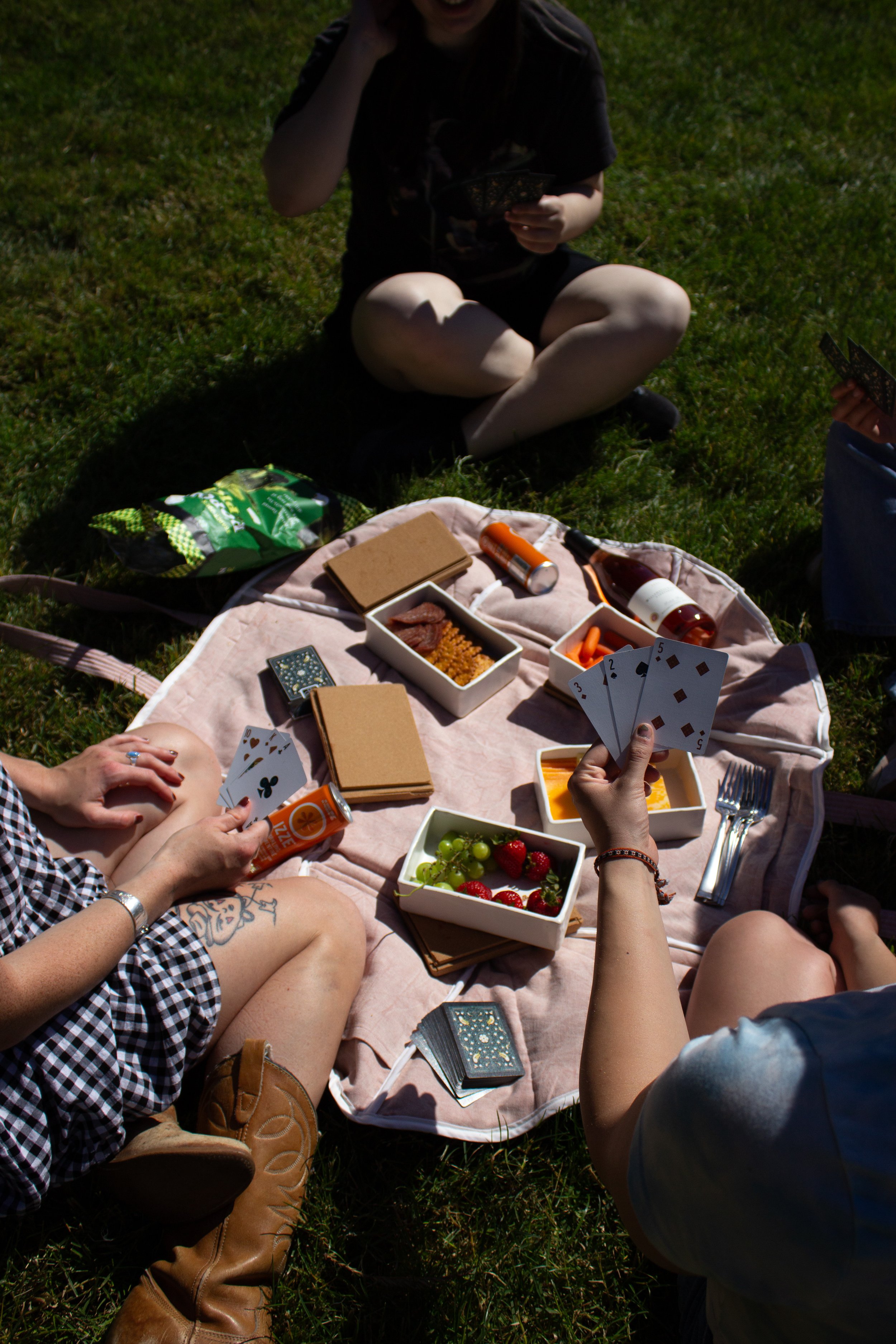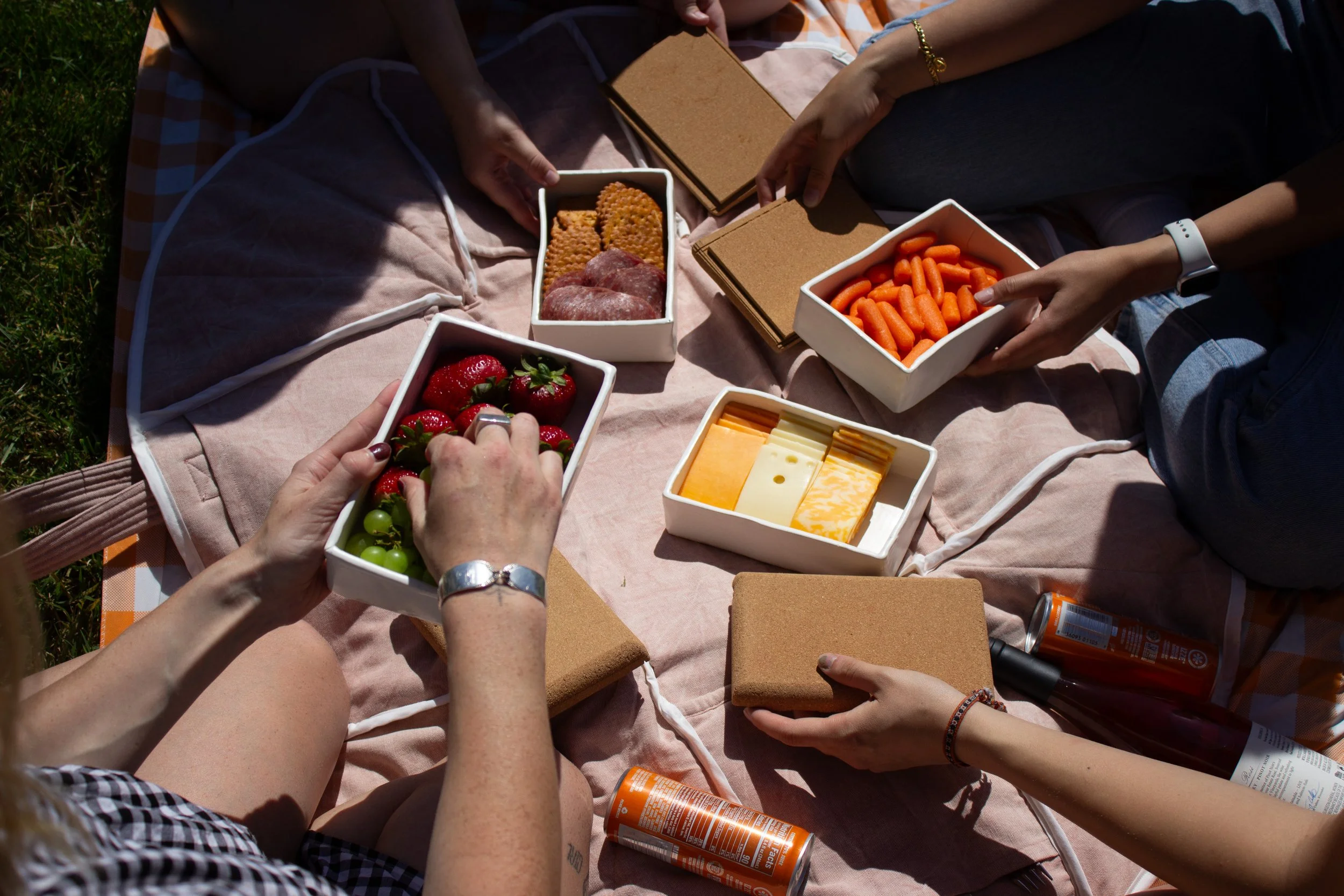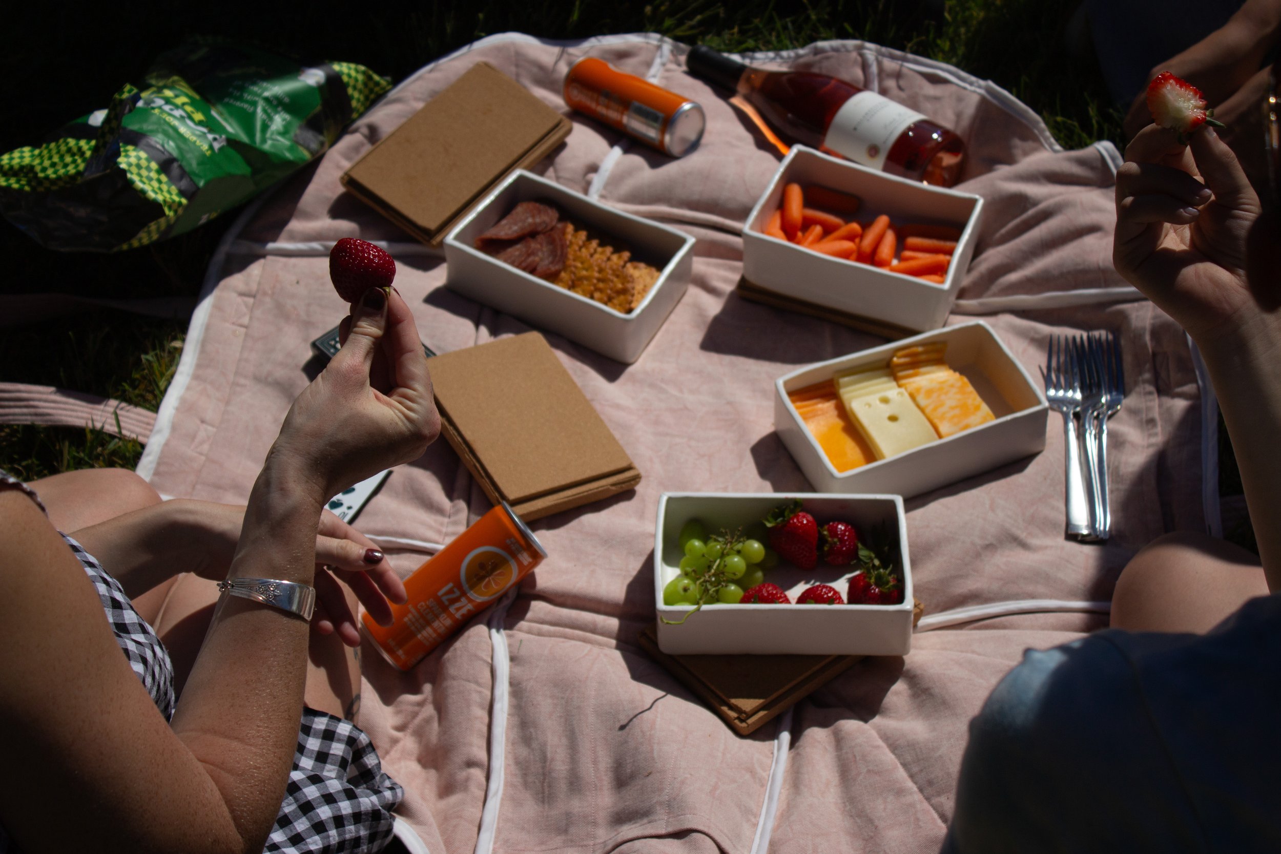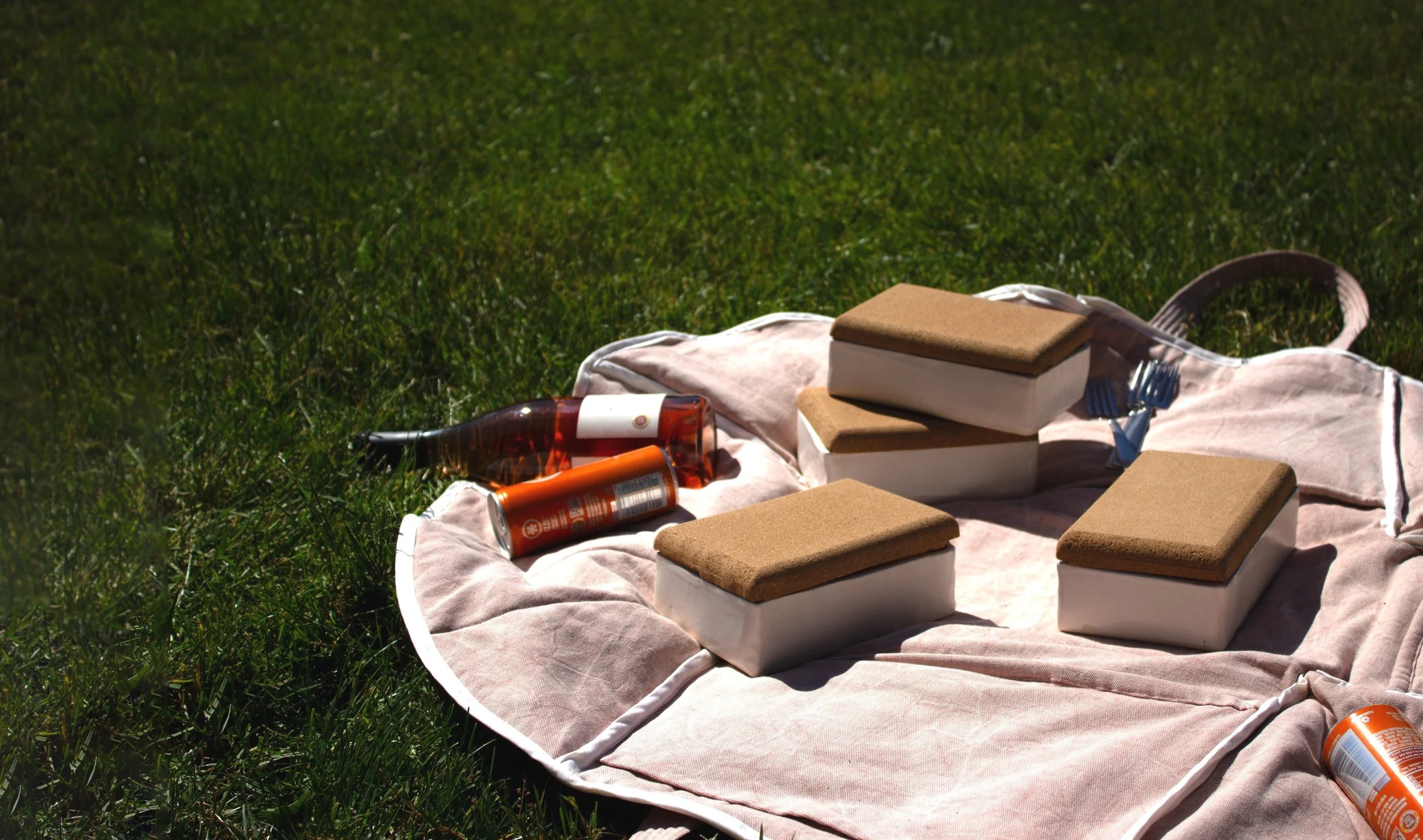 To gain appeal and interest in our new tupperware set, my partner and I decided to market it as a picnic set. The set has four containers and a bag that zips out into a picnic blanket.